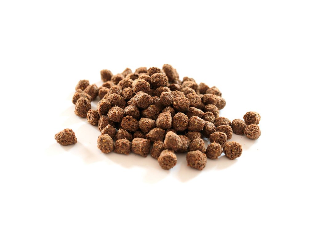 • Technologická úprava extrúzie zvyšuje stráviteľnosť, hygienickú čistotu doplnkového krmiva a zabezpečuje bezpečné kŕmenie bez nutnosti ďalších prácnych úprav šrotovaním a varením