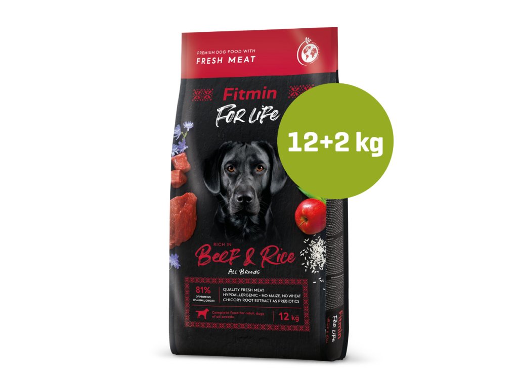 Fitmin For Life Beef & Rice krmivo pre psov 12 + 2 kg navyše