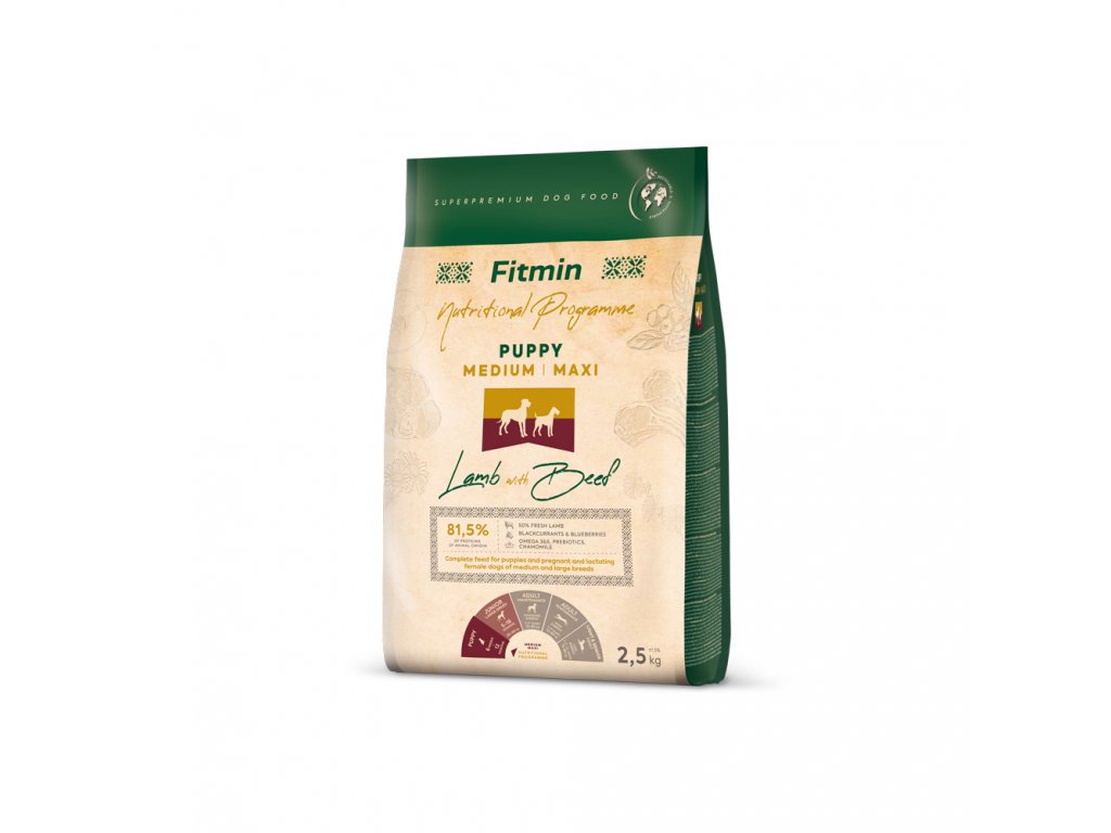 Fitmin Medium Maxi Lamb with Beef krmivo pre šteňatá 2,5 kg