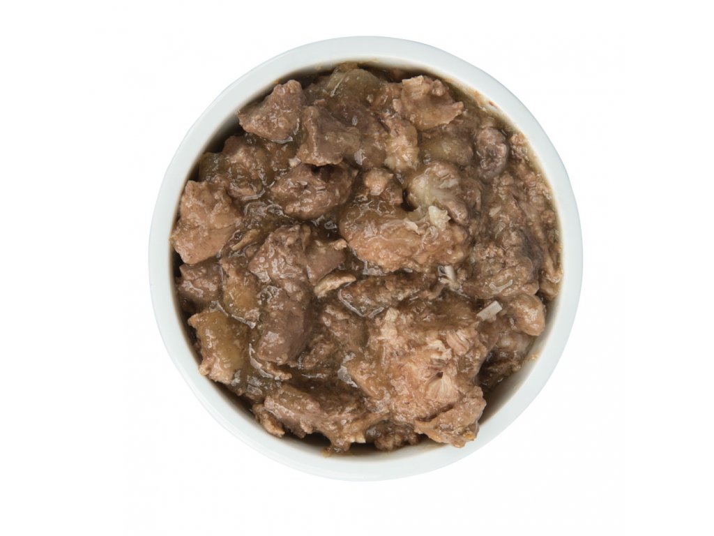 Mäsová konzerva bez pridaných doplnkových látok a iných prísad.