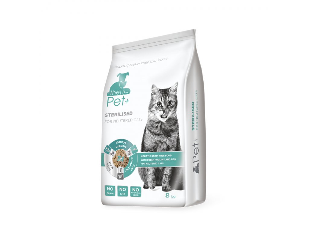 Kompletné krmivo ThePet+ pre dospelé mačky so sklonmi k nadváhe, kastrované a sterilizované mačky, ktoré potrebujú granule bez obilnín. Krmivo obsahuje čerstvé hydinové mäso, ktoré je chutné, veľmi dobre stráviteľné a zároveň bohaté na železo a zinok.